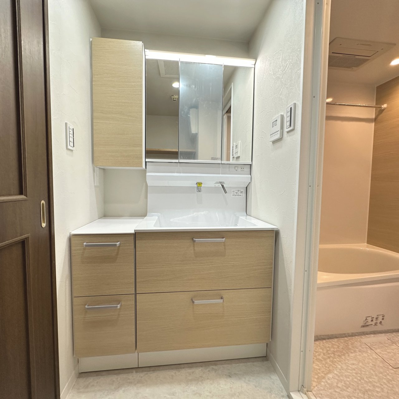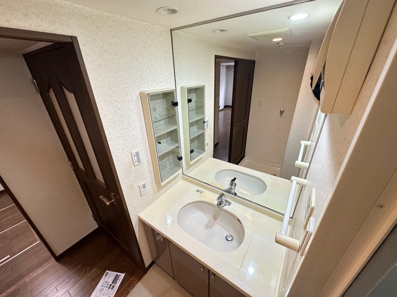 洗面化粧台交換:収納力とデザイン性を備えた洗面化粧台にリニューアル。毎日の身支度がより快適になります。