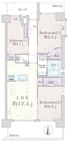 ■ 専有面積:65.01㎡ ■ バルコニー面積:14.07㎡