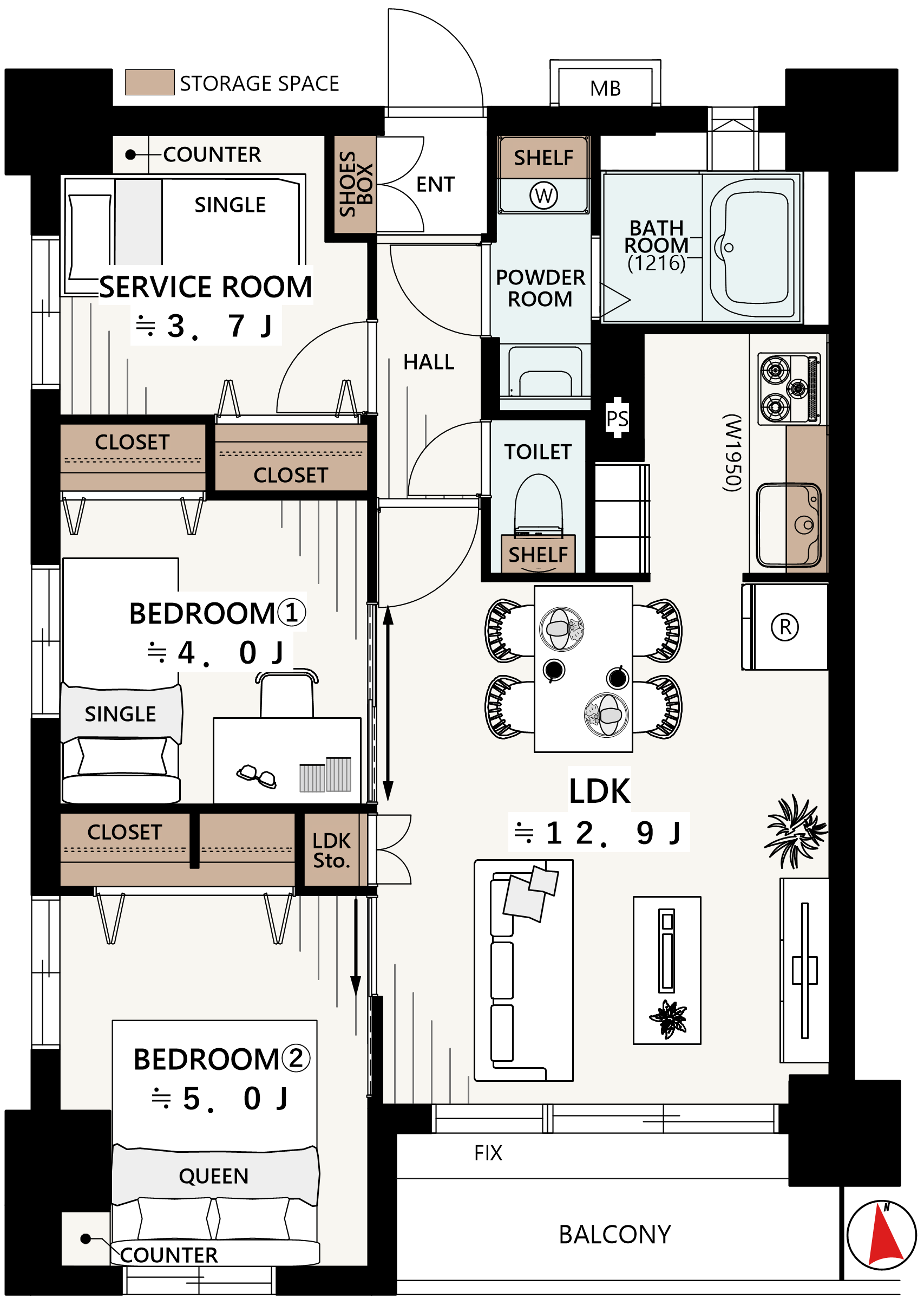 ■ 専有面積:56.74㎡ ■ バルコニー面積:4.58㎡